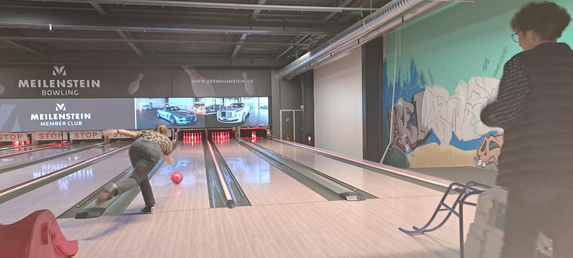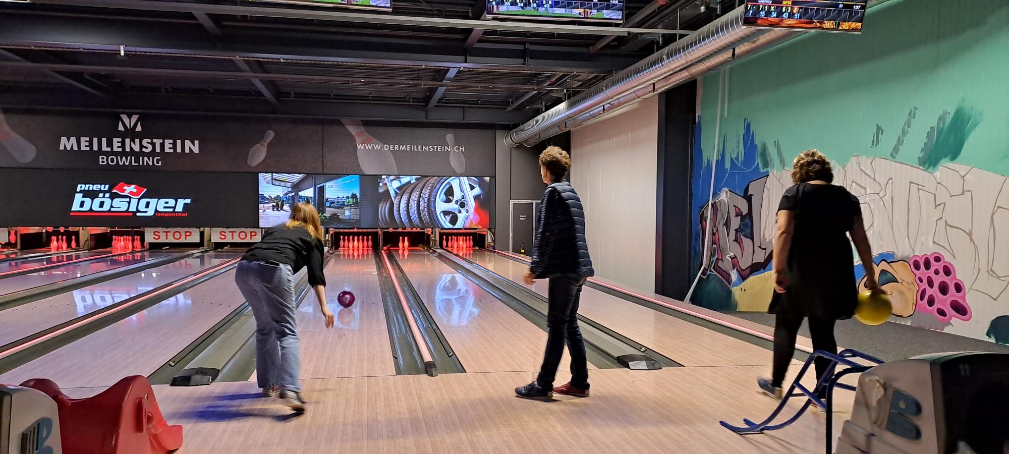 Der Teamevent startete mit Pizza in allen Formen und Grössen im Restaurant Meilenstein Langenthal. Während die einen ihr Schicksal in Form von „Pizza Capricciosa“ hinnahmen, entschieden sich andere für die „politisch umstrittene Hawaii“ Danach gings ab auf die Bowlingbahn, wo wir in 3 Teams mutig gegen Physik, Schwerkraft und unsere eigenen Koordinationsfähigkeiten antraten. Aber wir waren sowas von bereit für Höchstleistungen… oder wenigstens für unterhaltsame Fehlwürfe. Jeder Strike wurde gefeiert, als hätte man gerade einen Weltrekord aufgestellt, und jede Rinne wurde kommentiert mit einem „Ähm… Warm-up. Ist Absicht.“ Die seitlichen Kinder-Schutzbanden hochklappen war für Erwachsene „nicht erlaubt“ (haben wir so akzeptiert). ABER, das Gestell, auf das Kinder ihre Kugel legen und dann nur noch runterschubsen müssen, haben wir getestet. Mit Würde.