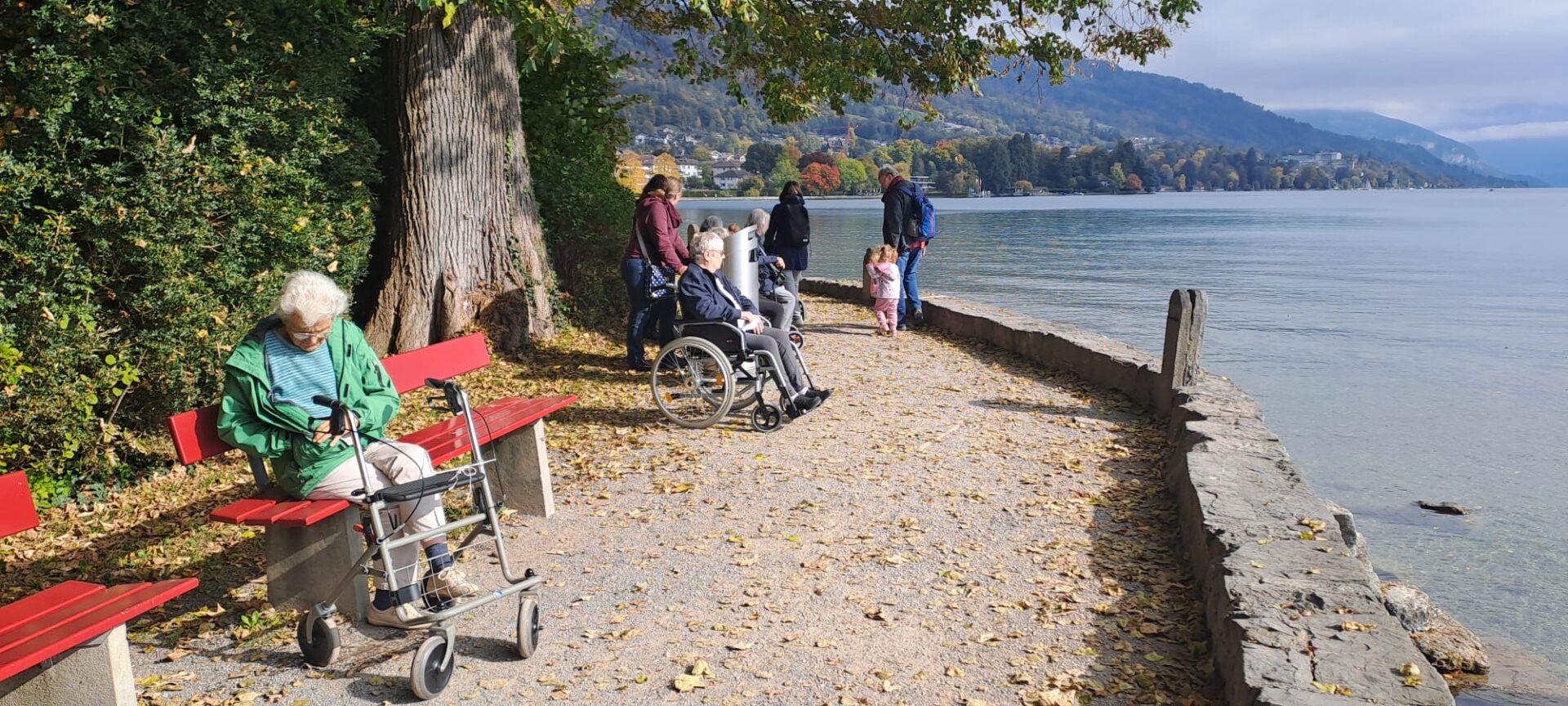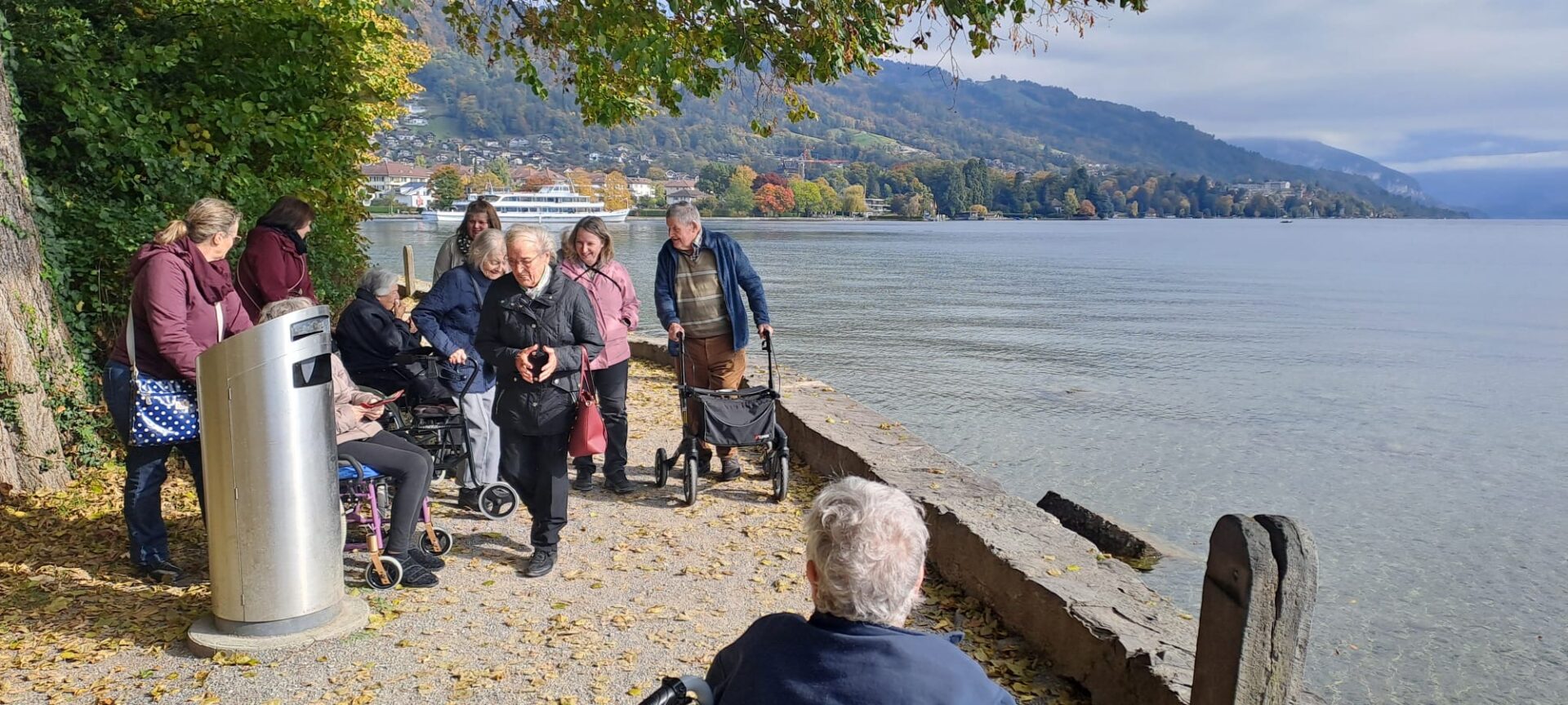 Nach dem Essen lockte ein gemütlicher Spaziergang am Seeufer – rechtzeitig begleitet von Sonnenschein, guter Laune und ein paar neugierigen Enten und Schwänen. Die Rückreise kam dann fast zu früh, doch unsere Bewohnenden kehrten zwar müde, aber überglücklich zurück ins Seniorenheim – also nach Hause. Der Ausflug war ein Volltreffer! Und eins ist klar: Das machen wir wieder.