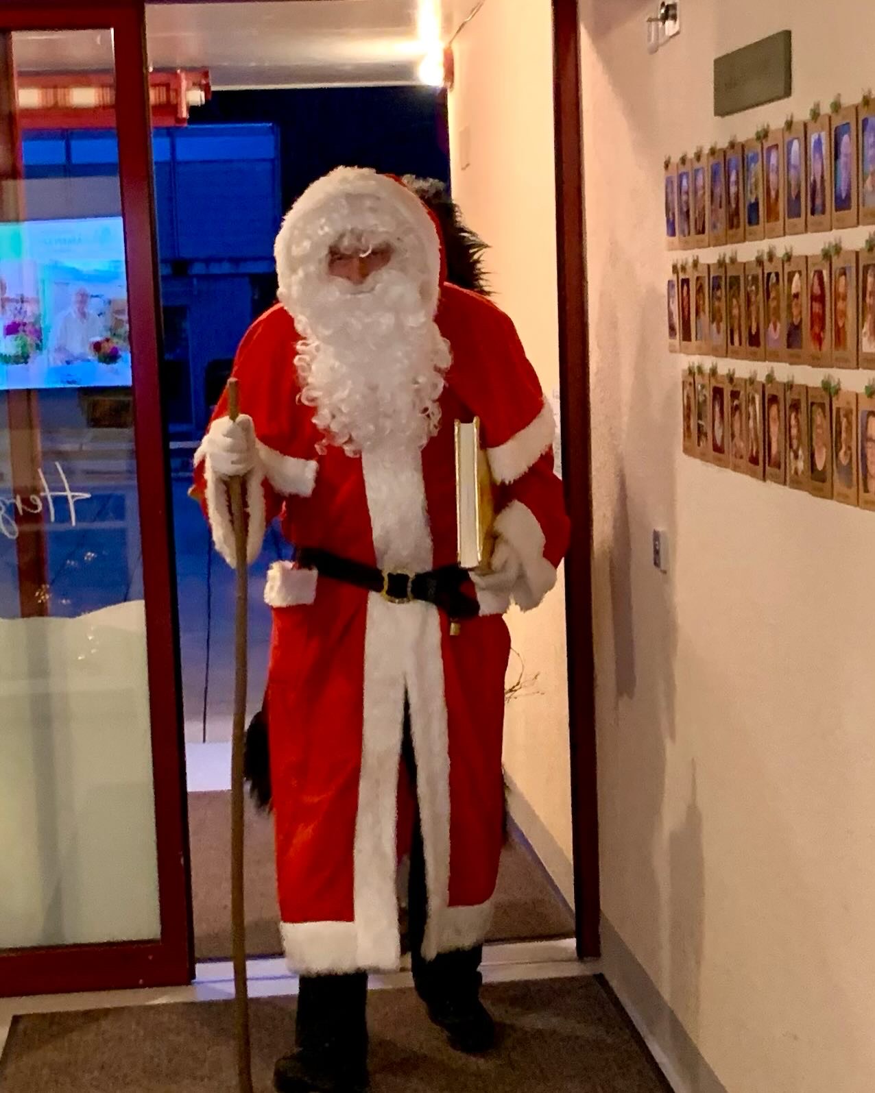 Heute durften wir besonderen Besuch empfangen. Der Samichlous und sein Schmutzli brachten Wärme, Freude und ein Stück vorweihnachtliche Magie zu uns, nach Hause. Mit liebevollen Worten und einem Lächeln für die Bewohnerinnen und Bewohner sorgten sie für strahlende Augen und einen unvergesslichen Moment der Gemeinschaft. Ein herzliches Dankeschön für diesen schönen Besuch, der unsere Herzen berührt hat.